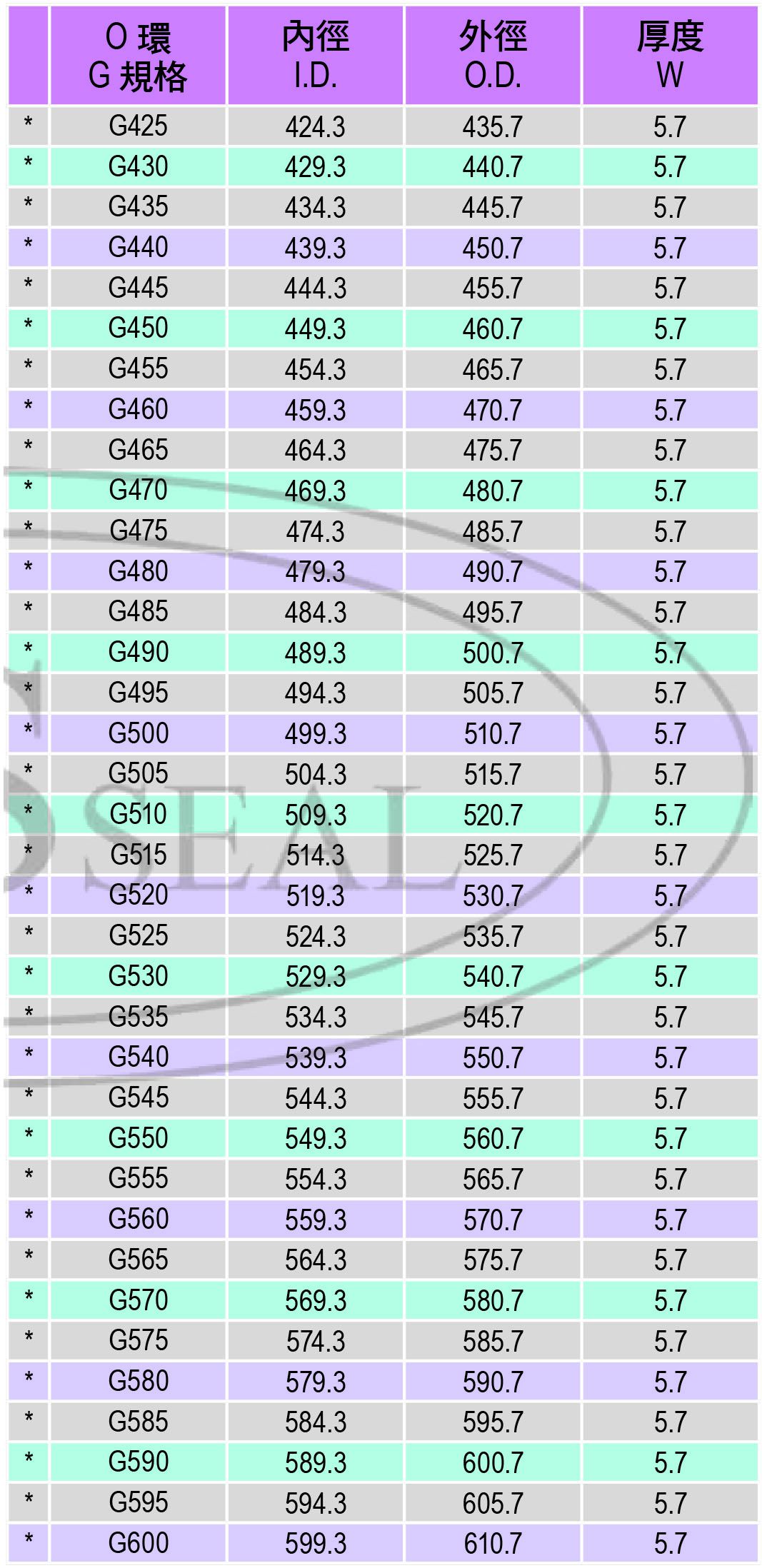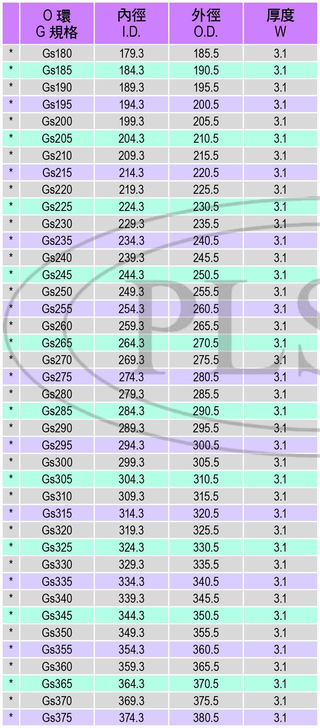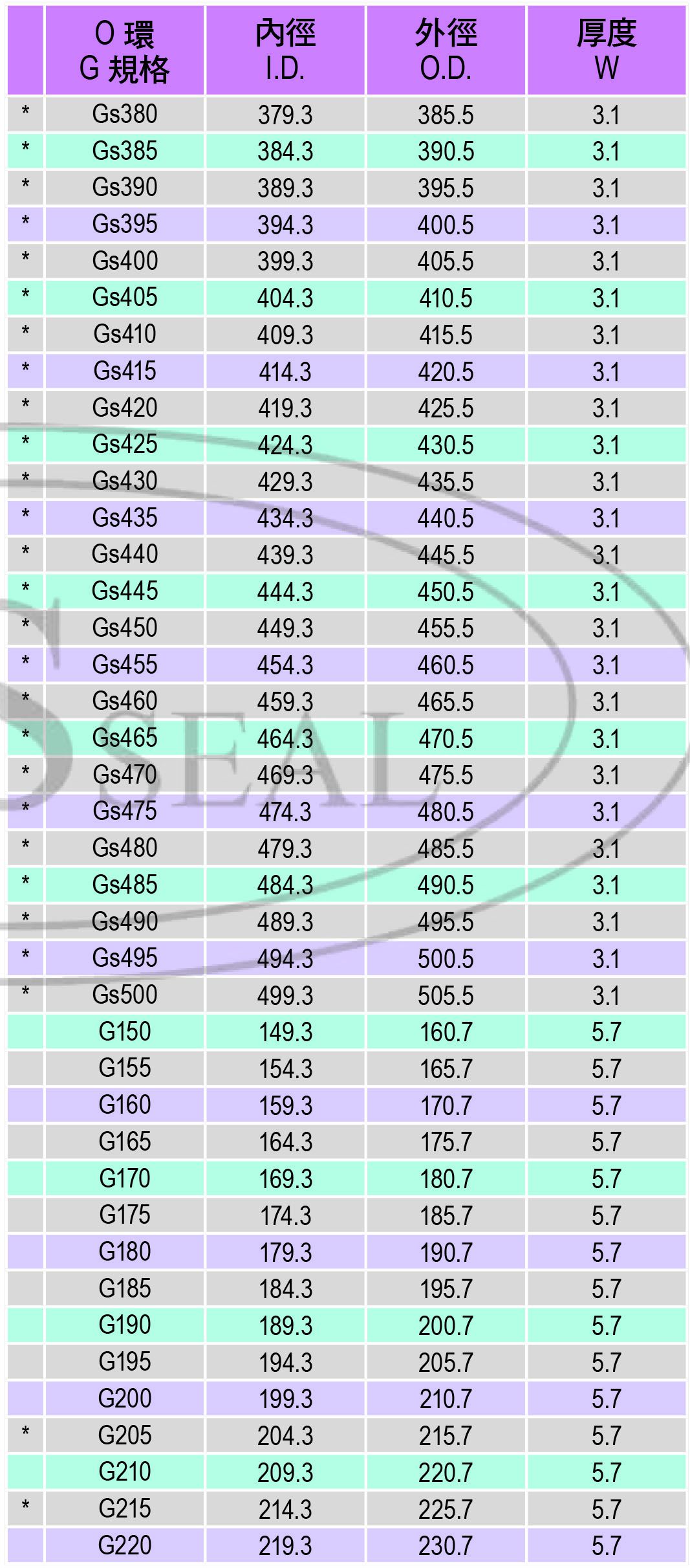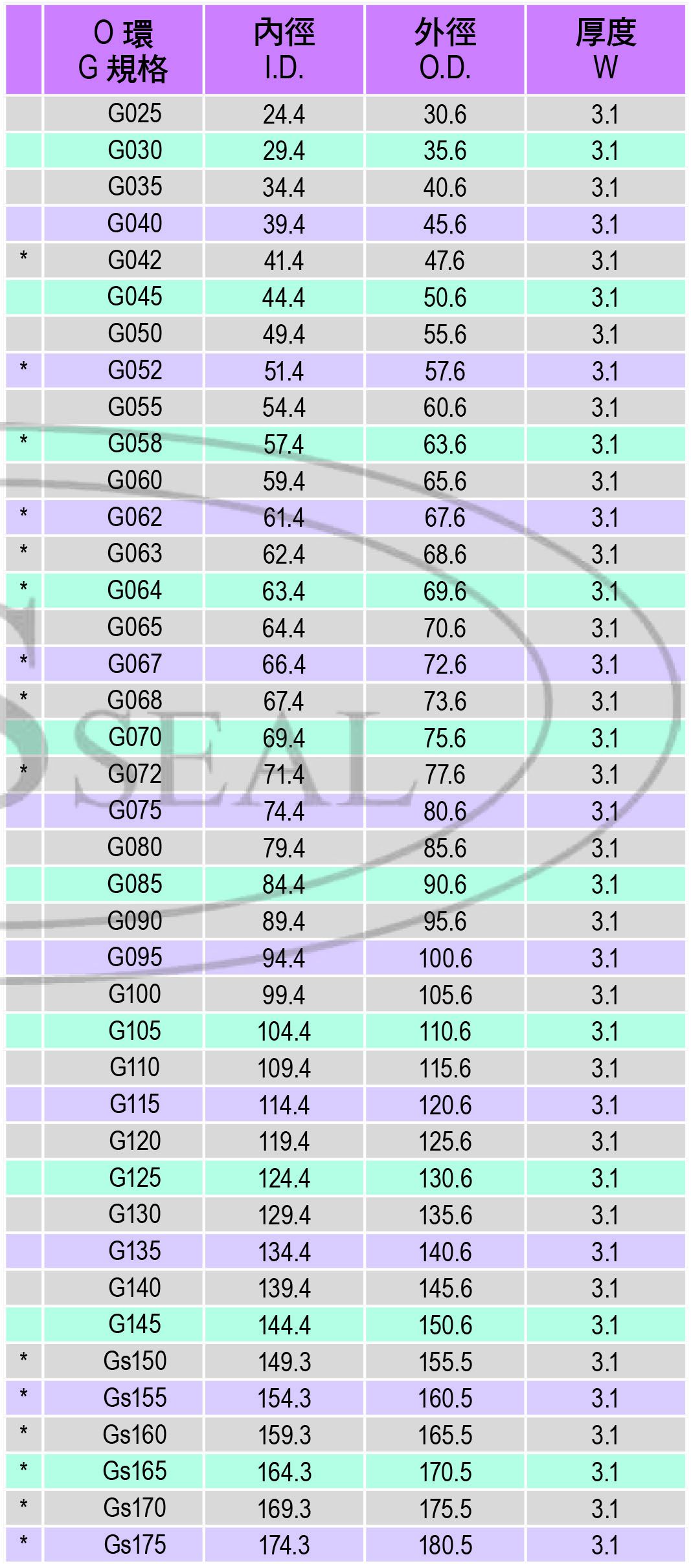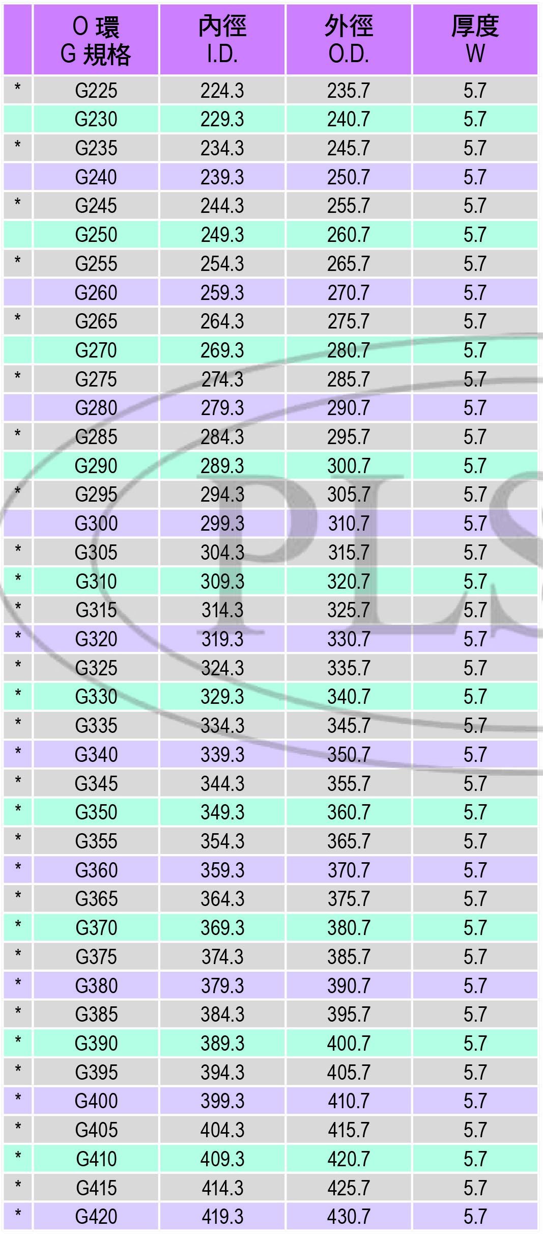 O環G規格